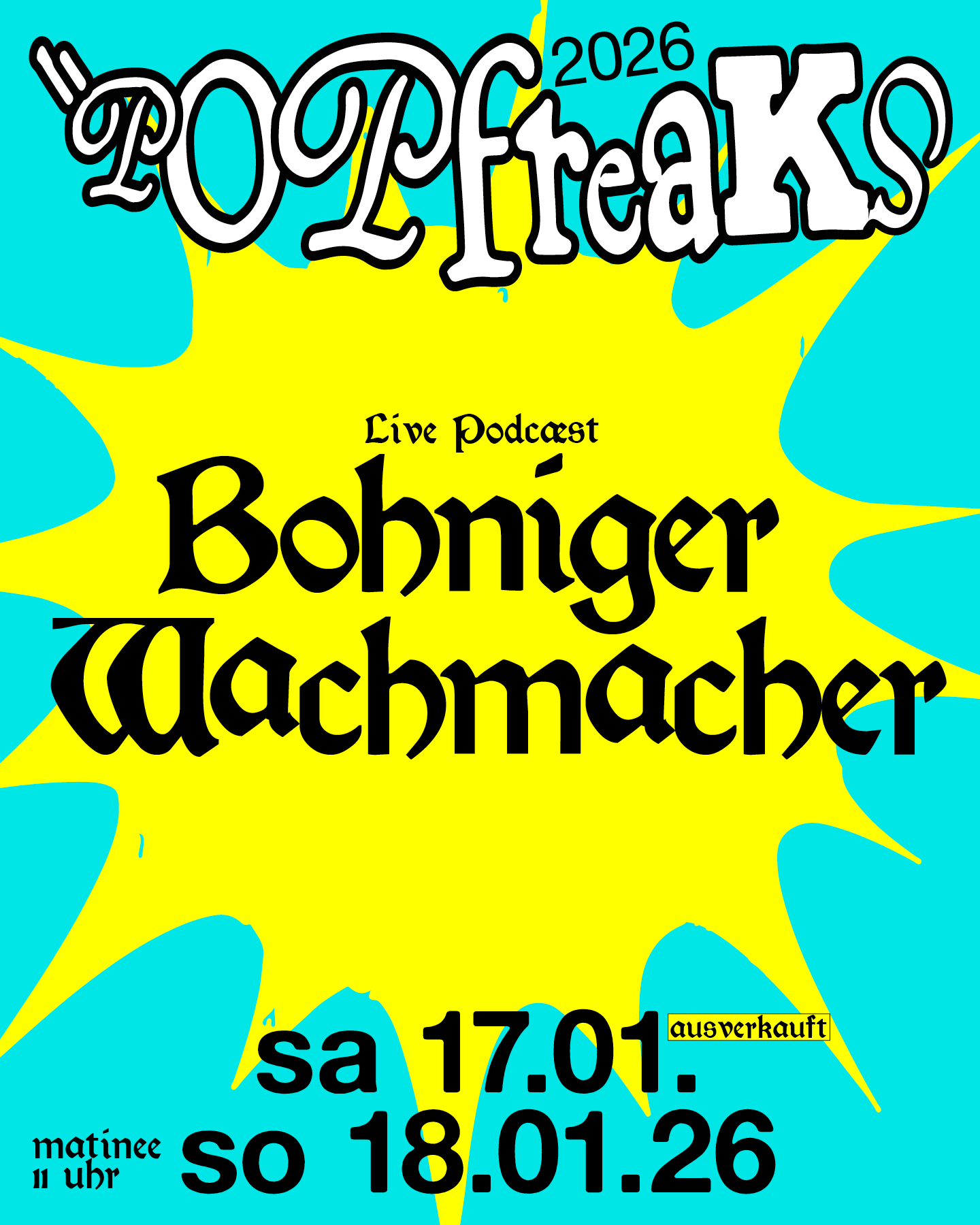 Wie immer neben der Spur und schnurgeradeaus in die Magengrube schreiben die Pop Freaks selber die schönste Petition: sie sind mehr denn je gefährdete Arten, geben sich aber niemals mit den billigen Plätzen zufrieden. Sie bringen uns Licht, denn wir werden alle ganz schön viel ausgehalten haben müssen, und sie bringen uns feel-good-news aus dem Podcast-Studio. Ein Sabbatical ist nur musikalisch zu akzeptieren, denn sie schieben im Kollektiv die Regler hoch. Die Pop Freaks sind Hymnen auf das, was hätte sein können, und auf den Mut, trotzdem weiterzugehen, sie verlieren sich in der Musik und stellen in in unsicheren Zeiten eine Verbindung her. Und vor allen Dingen sind wir alle zusammen mit den Pop Feaks nie wieder allein.