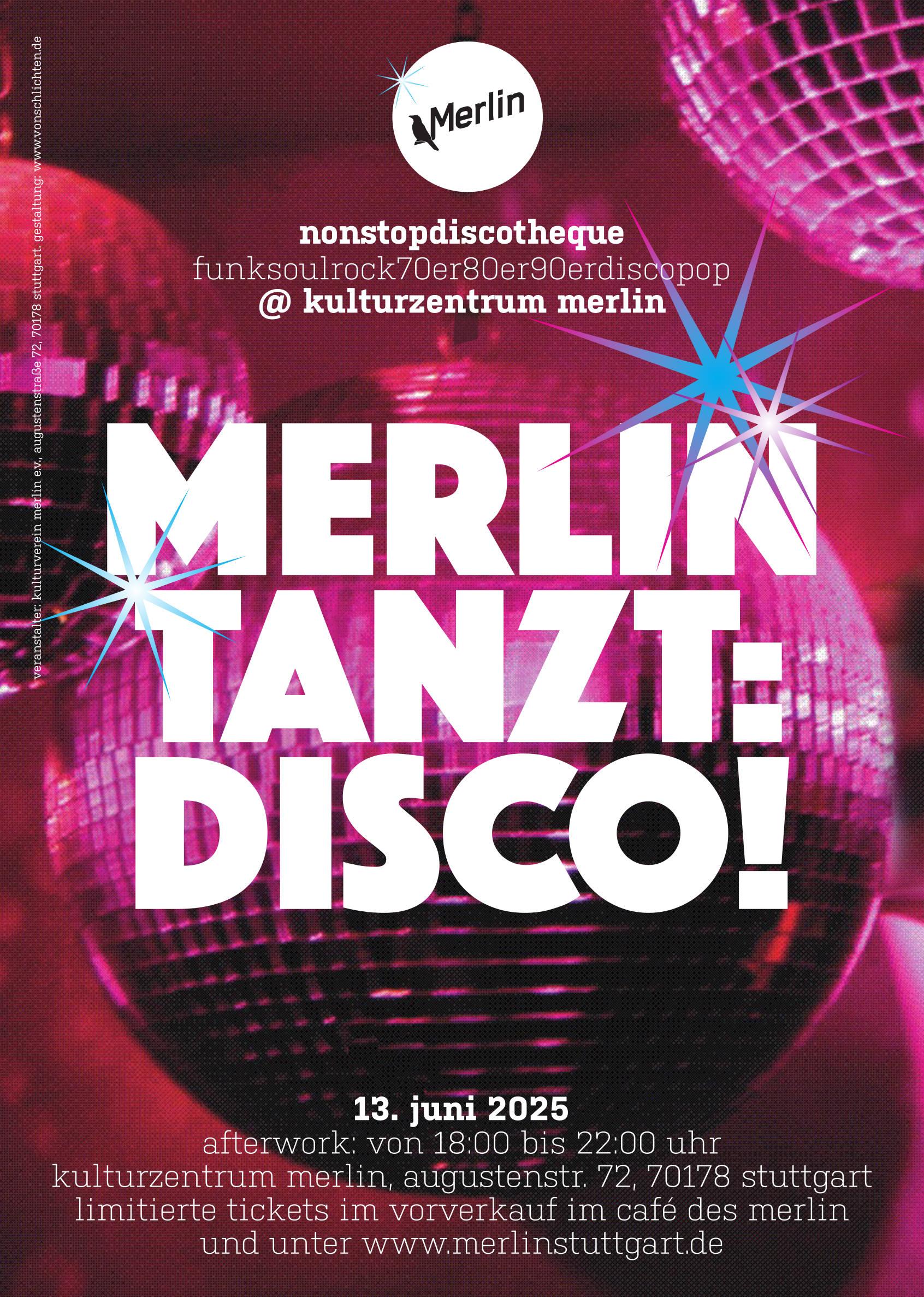 Wir bringen die Discokugel in Rotation und unsere Gäste gleich mit: Tanzparty im Merlin! Danach entweder ins Stuttgarter Nachtleben stürzen oder im Café des Merlin noch einen entspannten chillout-dance-drink geniessen.