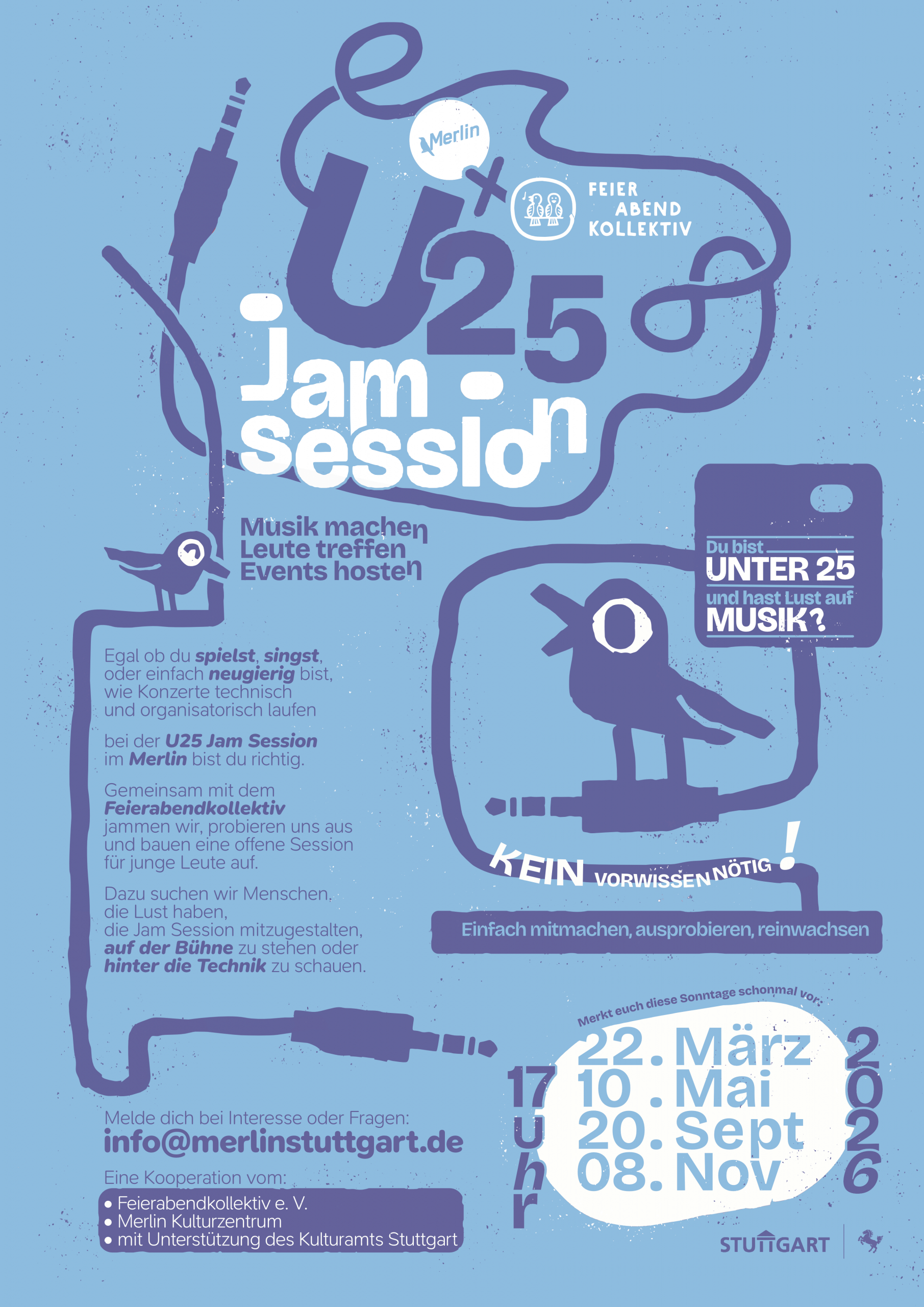Egal, ob du spielst, singst oder einfach neugierig bist, wie Konzerte technisch und organisatorisch laufen – bei der U25 Jam Session im Merlin bist du richtig.